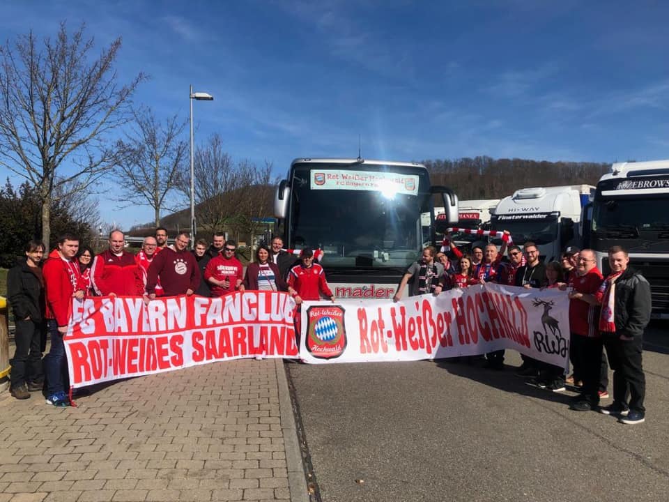 In Zusammenarbeit mit unserem befreundeten Fanclub Rot Weißer Hochwald machten sich 29 Bayernfans in den frühen Morgenstunden auf zur AKFD Fahrt Richtung Allianz Arena. Bei strahlendem Sonnenschein war unsere Rast in Gruibingen mit einem zünftigen Frühstück ein schöner Start. Hier wurde ein Bild für die FC Bayern Fanbetreuung gemacht und man sah jedem die Vorfreude an.